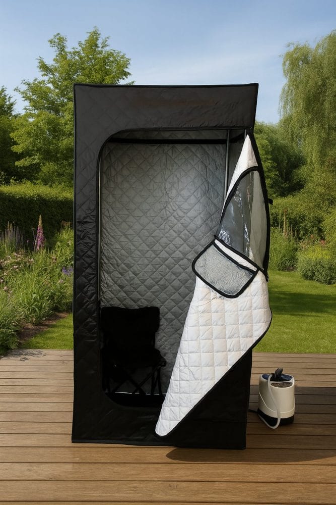 Saunaen er nem at folde ud og kræver kun en plan overflade. Tilslut den medfølgende dampgenerator , og du er klar til en afslappende session. Den justerbare dampintensitet og tidsindstillinger på mellem 20 og 40 minutter giver dig fuld kontrol over oplevelsen.