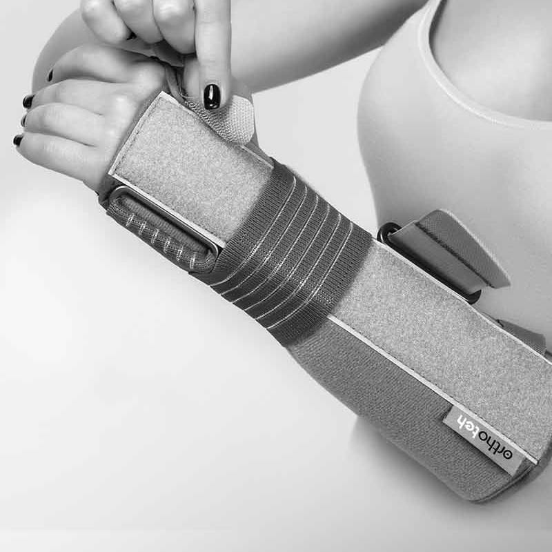 Få optimal stabilisering av håndleddet med denne unike håndleddsskinnen fra Orthoteh. To skinner er inkludert: En i plast, og en i aluminium. Aluminiumsskinnen kan spesialtilpasses håndleddet ditt – få hjelp av helsepersonell (lege eller fysioterapeut) til dette.