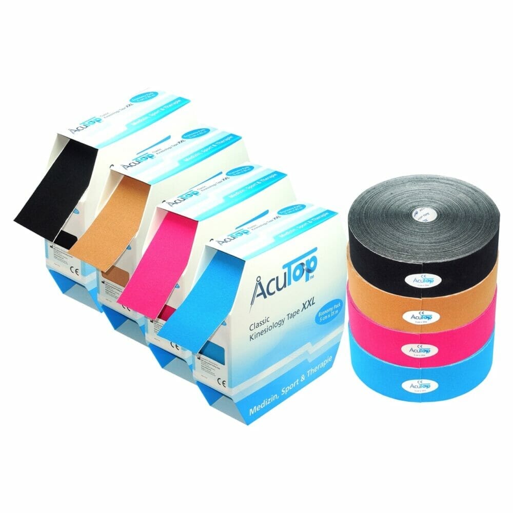Kinesiotape XXL er spesielt egnet for deg som jobber profesjonelt med behandling av idrettsskader og derfor trenger store mengder tape. Her er risikoen for overanstrengte muskler eller ledd høy.